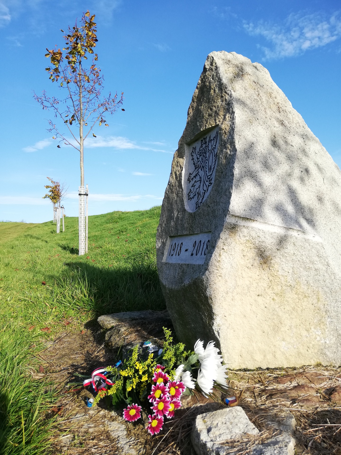 Součástí krajiny se stal "náš" pamětní kámen. Přejme mu, ať kolem něho probíhají dějiny spíše poklidně, se včelkami, dětmi a radostí.